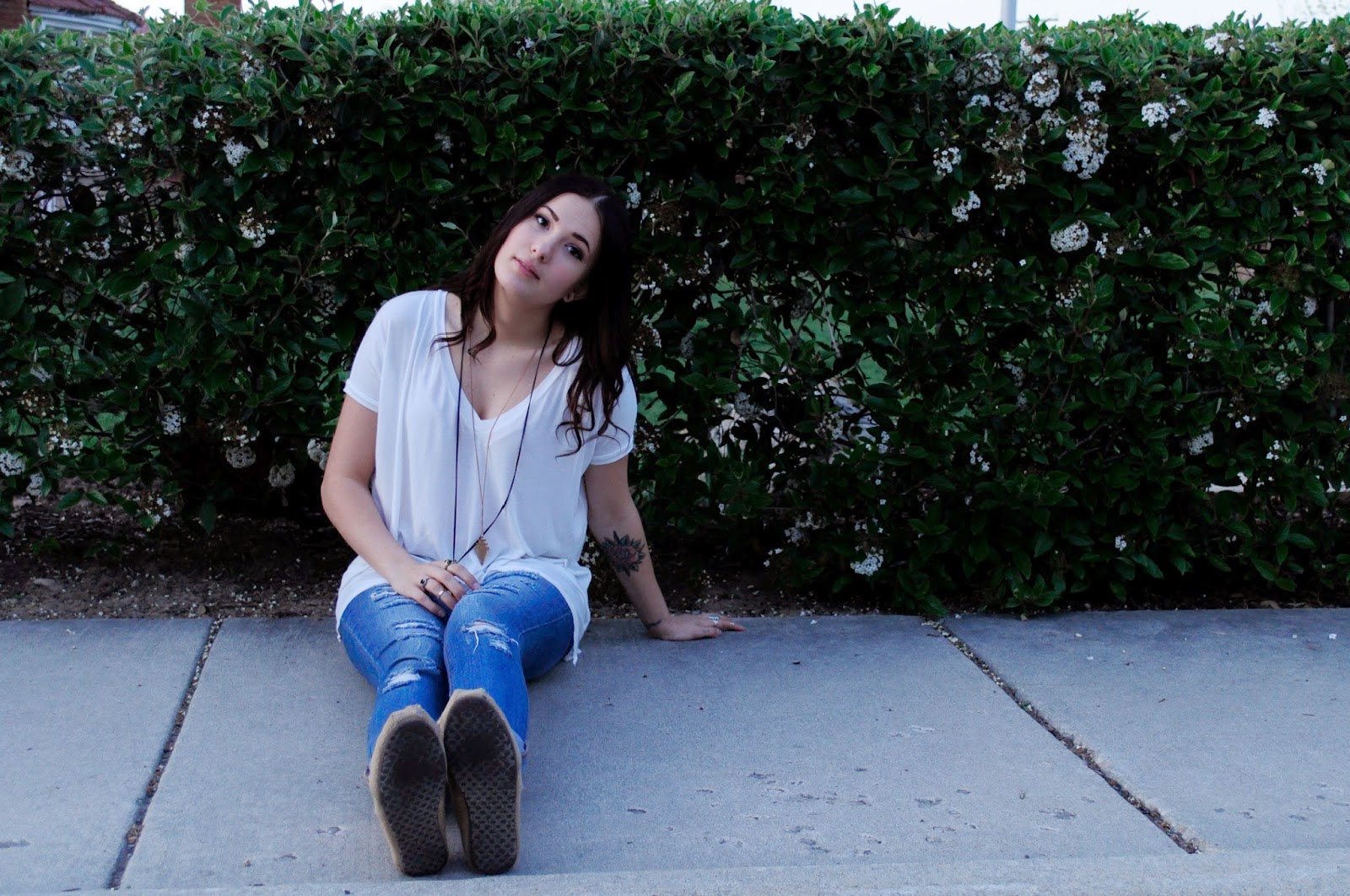 But give me a chance before you judge! This shirt is versatile. That is why I love it. Yes, a white tee with plain blue jeans would be lame, but you can dress this up, a lot! I added some ripped jeans, burlap toms, and some cute necklaces for a relaxed look. I love it because the material is beyond soft.